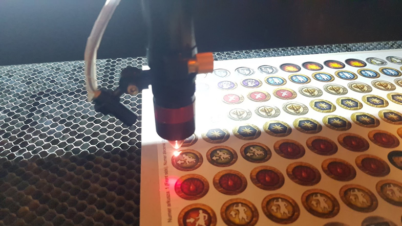 Wykorzystując wysokiej klasy laser wykonujemy bardzo nietypowe elementy przy zachowaniu świetnej jakości i precyzji nawet przy pojedynczych nakładach. Grawerujemy laserowo kości, wycinamy nieregularne kształty, czy też otwory na znaczniki w planszetkach.